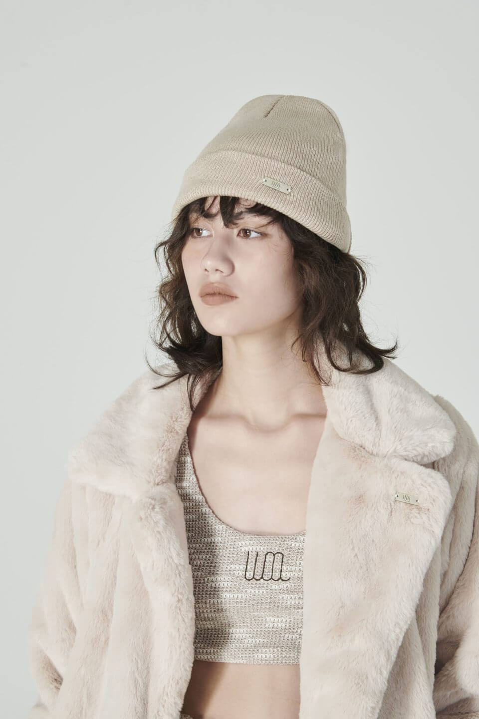 Description : Beanie hat, soft texture, smooth color, decorated with brand logo parts. Match every look.