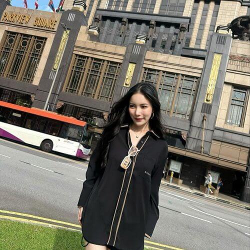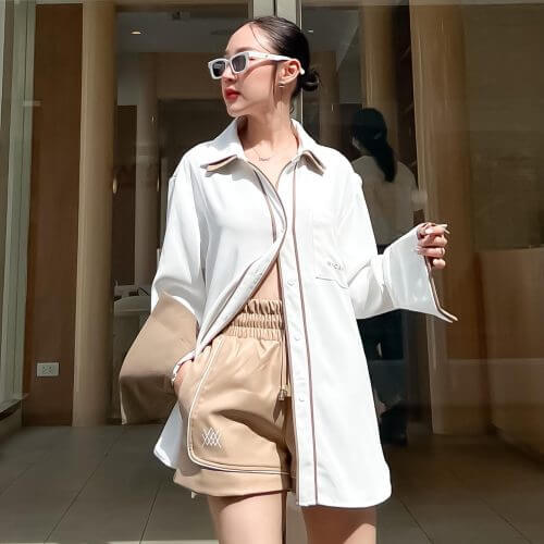 เสื้อเชิ้ตแขนยาว ผ้าไม่บาง ดีเทลปกซ้อนและแขนซ้อน เหมาะใส่เป็น every look