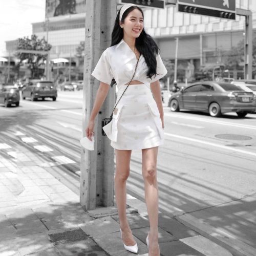 เดรสสั้นคอปก ผ่าหน้าช่วงเอว ปักผ้าทั้งชุด มีซับใน กระเป๋าใหญ่โดดเด่น เพิ่มดีเทลป้ายโลโก้แผ่นหนัง ใส่ง่ายมีซิปข้าง