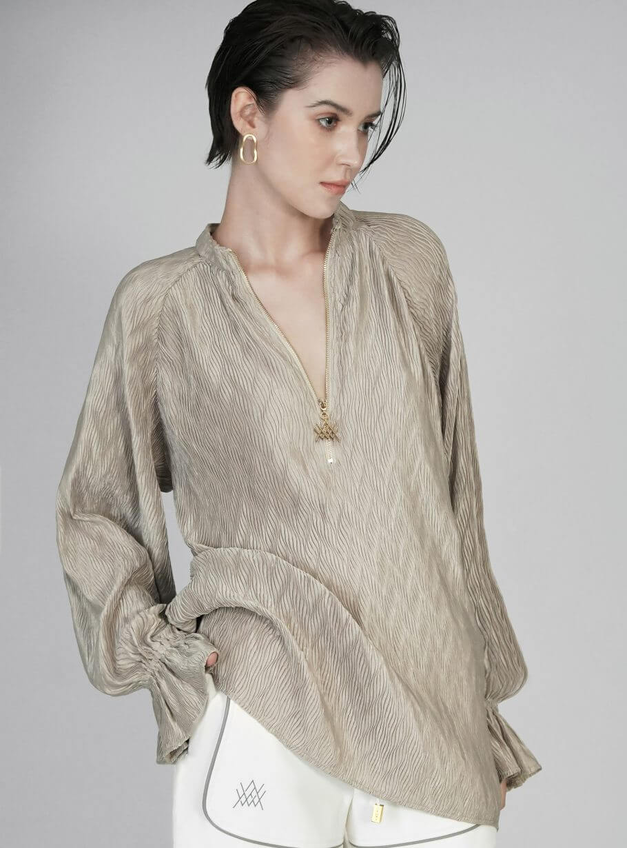 กระโปรงเอวสูงสั้น เอกลักษณ์ลวดลายโมโนแกรม กระเป๋าใหญ่โดดเด่น สวมใส่ง่ายซิปด้านหลัง เพิ่มดีเทลที่เชือกผูกตุ้มทองหรูหรา