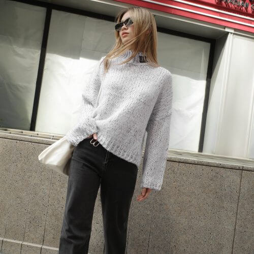 MILI SWEATER เสื้อสเวตเตอร์ทรงโดดเด่นไม่ซ้ำใคร คอปีนระดับกลางกำลังดี มี detail ปักแบรนด์ที่คอ และทรง oversize ใส่สบาย และแขนทรงกว้างให้ดูแขนยาว