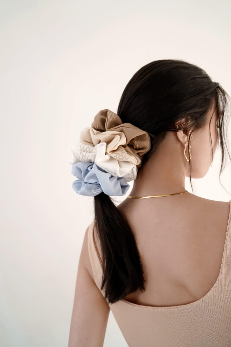 Hair rubber bands in 4 colors, embroidered with the brand’s unique monogram pattern.