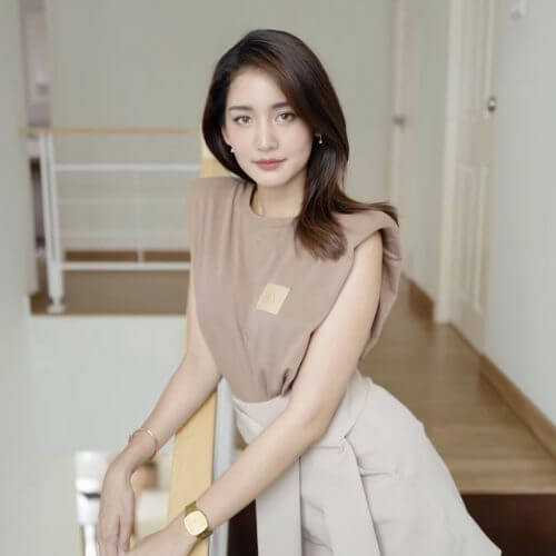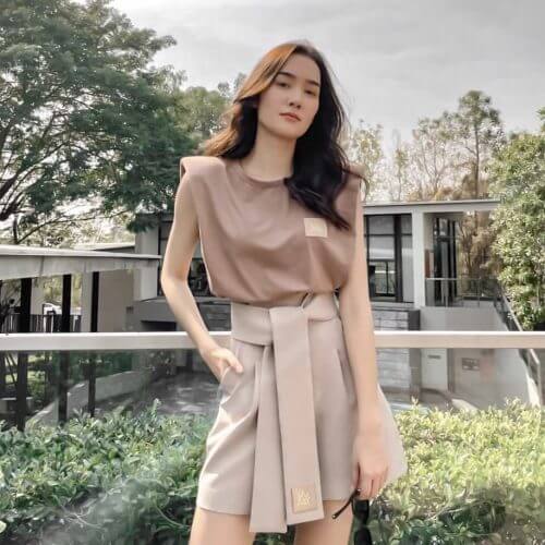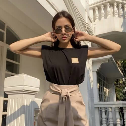 เสื้อยืดแขนกุด เสริมไหล่ทรงสวย ป้ายหนังพรีเมี่ยม ทรงฟรีไซส์