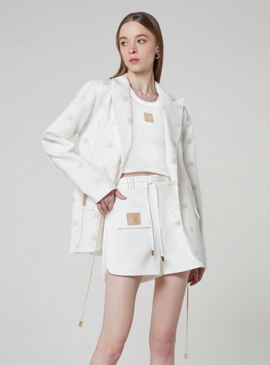 Description : Short-sleeved shirt with a collar and button detailing on the front. Asymmetrical hem details. Added a leather logo label.