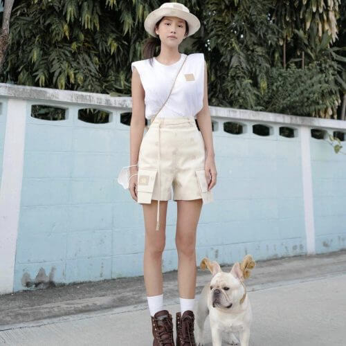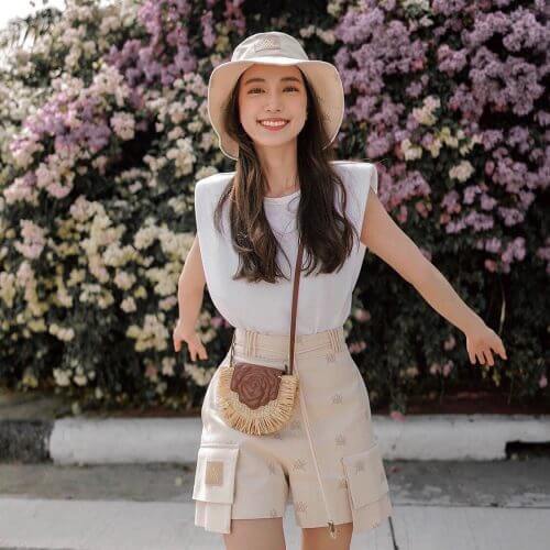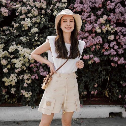 กางเกงขาสั้น ขาบาน ทรงสวยมาก ปักผ้าทั้งตัว มีซับใน ซิปหลังใส่ง่าย กระเป๋าข้าง layer โดดเด่น หูเข็มขัดตกแต่งหลายเส้น มาพร้อมเข็มขัดตุ้มทองหรูหรา